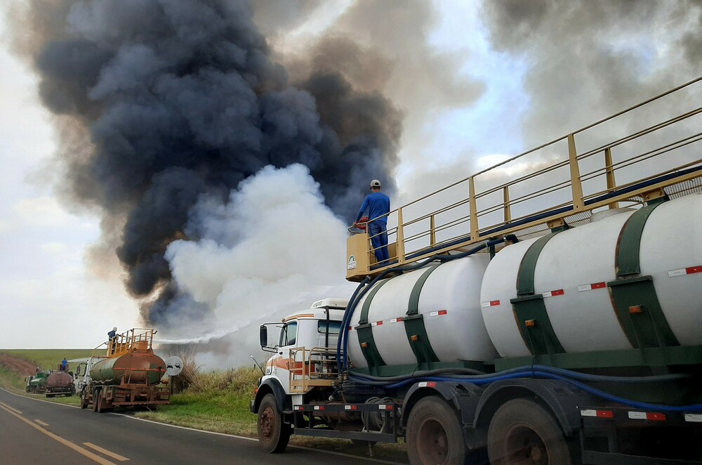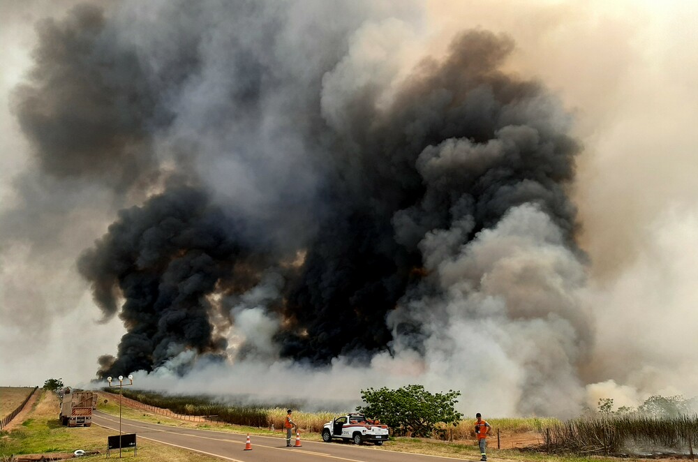De acordo com informações preliminares, o incêndio que atingiu o canavial começou após a carroceria de uma caminhonete F-350 ter pego fogo enquanto trafegava pela pista. No momento, o fogo se alastrou pelo acostamento, subiu pela vegetação seca e atingiu o canavial.